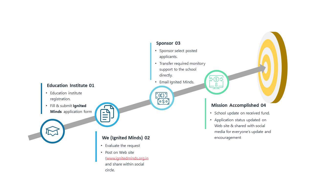 The organization works with a simple process where the donator can a pick a child and sponsor his education expenses which is directly paid to the institution by maintaining complete transparency.